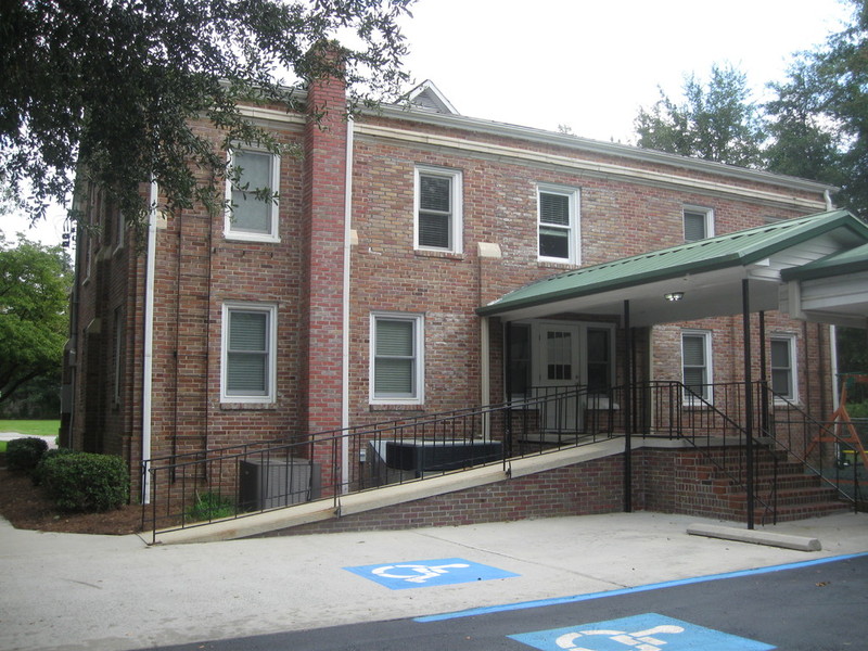 Handicapped Parking & Wheel Chair Ramp in Parking Lot behind Church.